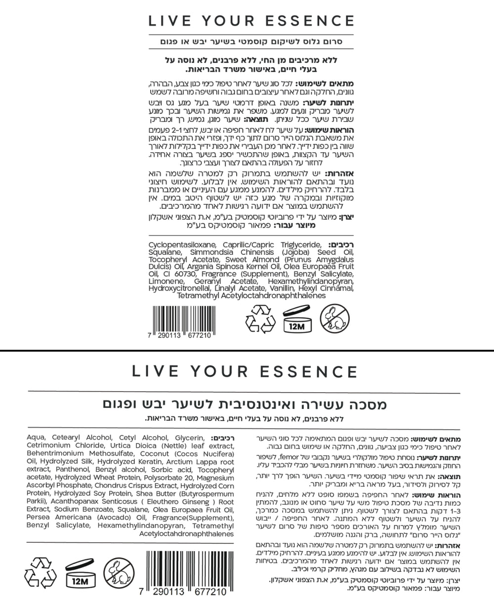 מסיכת משי לשיער וסרום גלוס לשיער הם 2 מוצרים שתוכננו להשלים אחד את השני, ולהעניק שיקום קוסמטי ומיידי לשיער יבש או פגום. המרכיבים של שני המוצרים פועלים בהרמוניה על השיער, ויוצרים יחד ריכוז גבוה של לחות ייעודית מרוכזת, שכל שיער פגום מקבל באהבה. אם יש לך בבית מסיכת טיפול משי וסרום גלוס לשיער, הרכיבי לעצמך טיפול נמרץ כמפורט בהוראות השימוש, ותיהני מטיפוח מקצועי לאורך זמן, מבלי לצאת מהבית ובמחיר משתלם יותר.