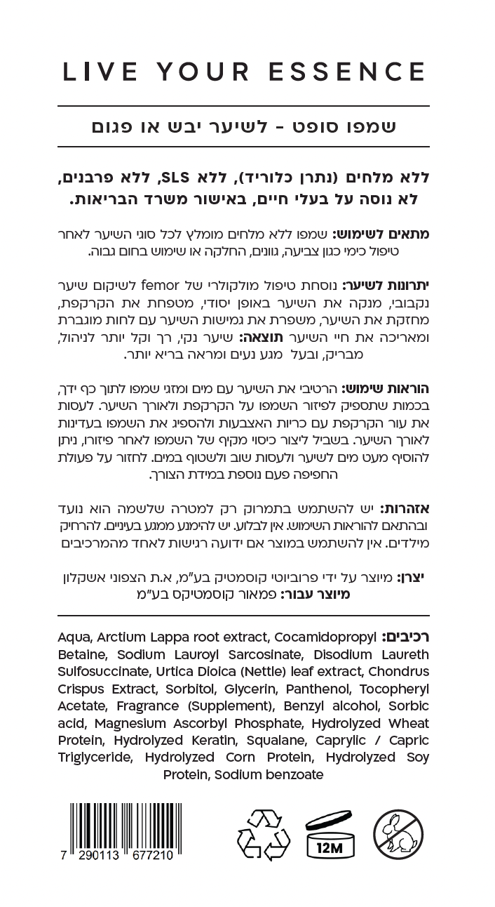 כן, סופט שמפו מתאים לשימוש על שיער דק ויכול לסייע לו למראה נפוח יותר. יש לשים לב לא להניח לאחר החפיפה מסכה או סרום סמוך לשורשי השיער, כדי לאפשר את נפיחות השיער.