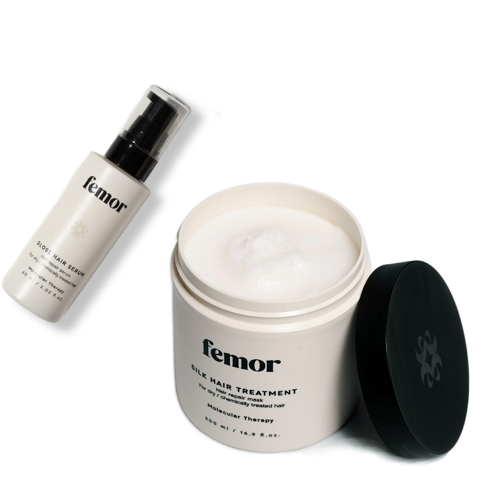 כן, ערכת הטיפול הנמרץ של Femor מיועדת לשיער הסובל מנזק כבד כתוצאה מטיפול כימי, כמו צביעה/הבהרה/גוונים/החלקות שיער. כתוצאה מהטיפולים הפולשניים שהותירו מום בהגנה הטבעית של השיער, הוא עכשיו נזקק להזנה חיצונית מתמדת, להשלמת מרכיבים חיוניים ולשיפור מצבו הקוסמטי. טיפול האינטנס מכיל מרכיבים יעילים ומרוכזים לטיפול והזנת השיער שלך, ולטיפוח מושלם.